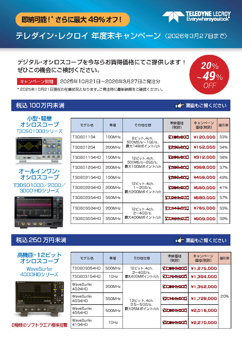 年度末キャンペーン&お値打ち在庫品キャンペーン【テレダイン・レクロイ】